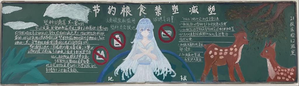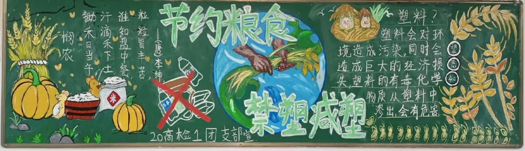 为贯彻落实中央厉行节约、反对浪费的重要精神,坚决制止公司餐饮浪费行为,切实培养员工勤俭节约的习惯,同时围绕“十四五”白色污染治理,开展塑料污染治理宣传,引领带动校园文明新风尚。2021年11月公司开展“节约粮食、禁塑减塑”为主题的黑板报设计比赛活动。