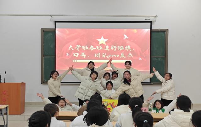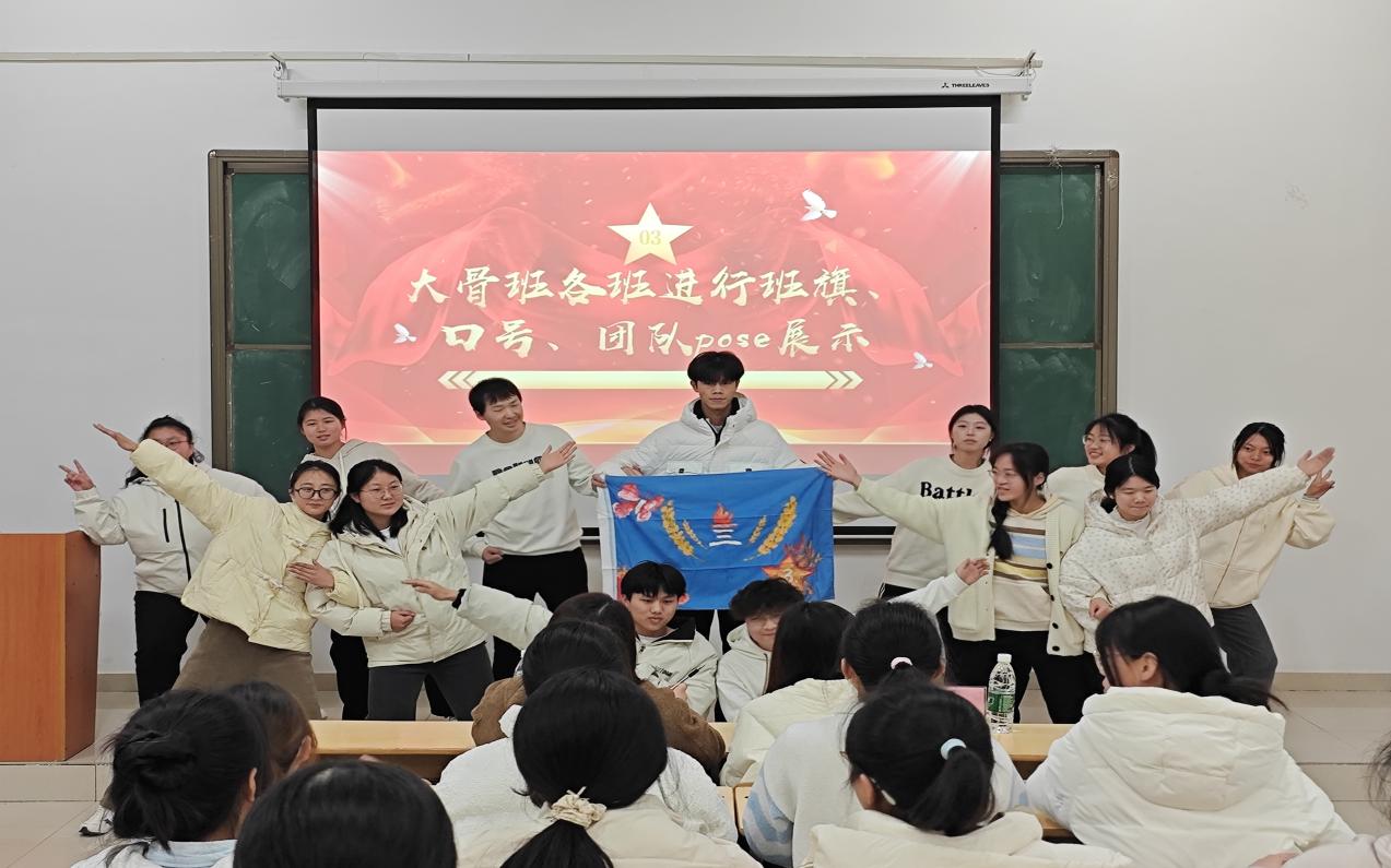 随后,分班展示环节将本次仪式推向高潮。各班分别上台展示了自己的班旗、口号及团队pose,形式多样、主题鲜明,现场掌声不断。