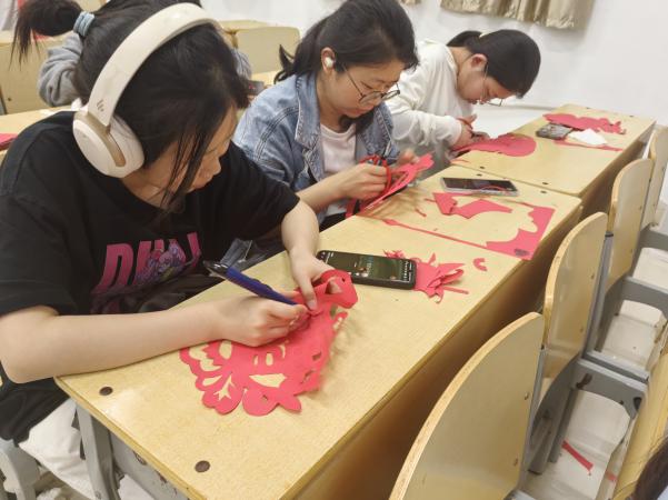 活动前期,志愿者们齐聚实训楼4-315教室。工具发放完毕,只见他们专注地拿起剪刀,在红纸上精心裁剪,每一处线条都细致入微。每一张剪纸都凝聚着志愿者们的付出与心意,彰显着他们对老人们的敬重与关怀。在制作过程中,志愿者们互相交流制作技巧,力求将更佳的作品呈现在老人面前。他们希望通过剪纸,将温暖传递到老人们的心中,为他们的生活增添一抹亮色。