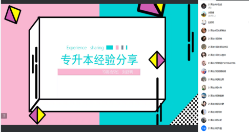 本次分享会共有100余人参加,同学们积极参与互动。优秀毕业生刘舒玥为同学们详细阐述了专升本所需的流程、注意事项、和自己备考的心得。分享会期间,同学们踊跃提问互动,通过此次活动,同学们更明确了自己的目标方向。