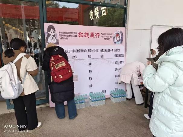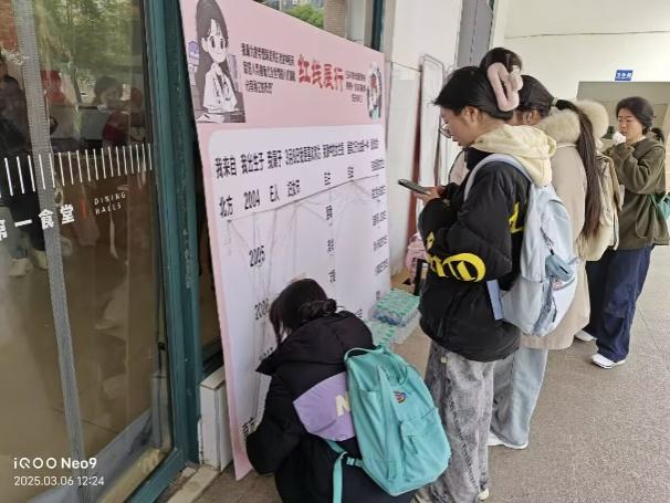 本次活动以“巾帼芳华”与“红线展行”双打卡点为经纬,构建起一场跨越时空的对话。员工们在追寻伟大女性足迹的过程中,于历史长河中打捞起坚韧与智慧的明珠;在叩问内心的命题前,以彩线为笔勾勒理想自我的轮廓。活动现场秩序井然,参与者热情高涨。两处打卡点前排起长队,朋友圈被活动照片“刷屏”,许多同学自发合影留念。本次活动通过寓教于乐的形式,引导师生深入理解妇女节的历史内涵,打破性别刻板印象,不仅让平等理念扎根心田,更以共鸣为纽带,在校园织就一片理解与共生的精神绿洲。
