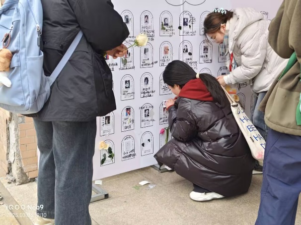 参与者化身时光旅人,于浩瀚历史长河中寻觅杰出女性的璀璨足迹。从居里夫人探索科学的星辰,到张桂梅点亮山野的希望,一张张承载着坚韧与智慧的照片被悉心挑选,经工作人员定格为光影印记,跃然于展示墙上。参与者以笔为舟,在照片下方郑重书写姓名与丰碑,墨迹间流淌着对女性力量的礼赞。活动现场,同学们或凝神沉思,或热烈交流,指尖轻触的每一帧画面,仿佛在时空经纬中织就一幅女性精神的恢宏长卷。活动尾声,朋友圈被真挚的感悟刷屏:“她们是暗夜中的炬火,照亮了我追寻自我光芒的勇气之路。”