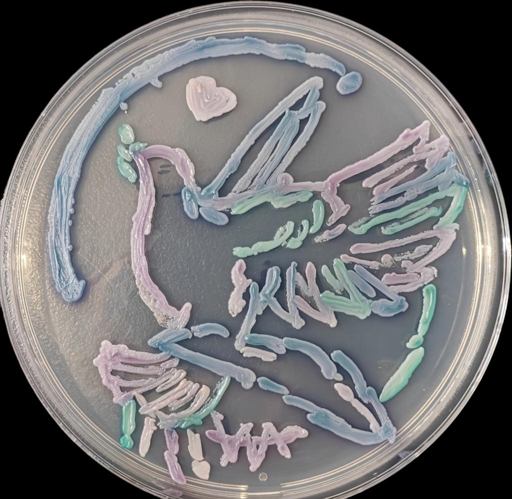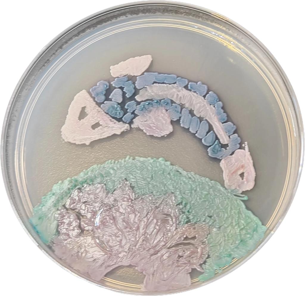 微生物培养皿艺术又称“琼脂艺术”,是以琼脂平皿为画布、微生物为颜料,经适当培育后,利用微生物在不同平皿培养基上生长后展示出的不同颜色及菌落特征来进行作品的艺术加工和创作。琼脂艺术是融医学、艺术和人文为一体的科学实践和新兴艺术形式。
