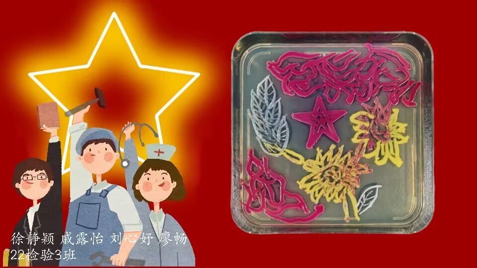 艺术需要精雕细琢,医学需要严谨求实。“只有在艺术与医学紧密结合的氛围中,医员工才能体会到艺术人文与医学的巧妙融合,感受到医学的魅力”。教工党支部的党员教师们在两个月的比赛时间里不分白昼和节假日坚持工作在实验室,为员工修改设计图、培训实验技术、采购和制备培养基、消毒环境和器材、整理和编辑所有的参赛资料,做出了无私奉献。参赛同学利用课外时间坚持在实验室里进行方案设计、培养条件摸索、绘制术技术练习、作品调整和优化。多才多艺的同学们将自己的书法、绘画、剪纸、摄影等方面的天赋,及扎实的微生物学的基本知识和熟练培养技术充分展示出来,所创作的部分作品精美绝伦、让指导老师和评委赞叹不已。同时,在创作过程中,同学们也展现出医员工持之以恒、严谨求实、团结协作的精神风貌。