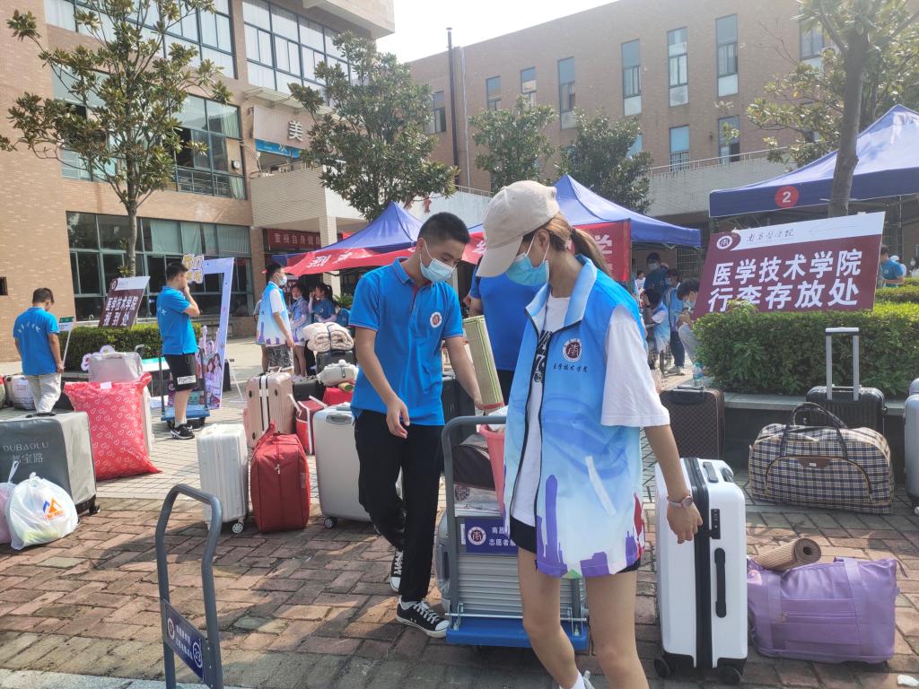 迎新工作人员以饱满的热情、贴心的服务、有序的安排面对每一位新生的到来,严格按照公司要求全力做好新生报到工作,帮助新生顺利完成报到和入住。报到现场秩序井然,老师们在报到处为新生答疑解惑,亲切交谈,引导新生尽快适应老员工活。员工志愿者们守候在繁忙有序的校园门口、宿舍楼和食堂旁承担着校内引导、行李搬运、消毒洁净、物资补给等,用热情与汗水守护新生。